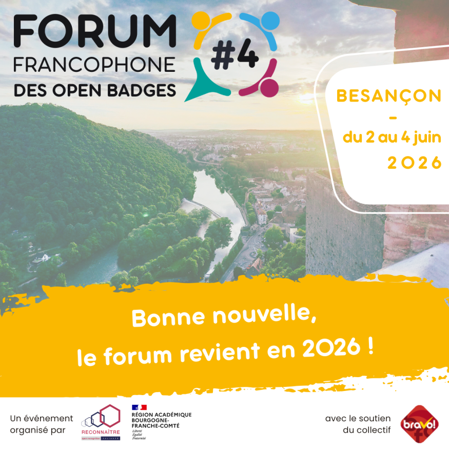 L'association Reconnaître, co-organise avec la DRANE et BRAVO-BFC la 4ème édition du forum francophone des Open Badges et de la reconnaissance ouverte à Besançon. Le maître-mot du forum, c’est : “Pratiquer” !