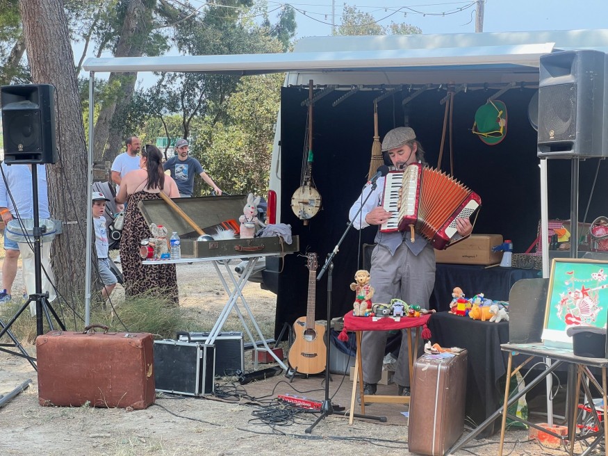 Guirigabacho est un magicien des sons. Cec bruiteur, clown, musicien mais ... pas accrobate, a forgé son univers autour des objets et des sons qu'ils produisent. Un Brico-bruitosicien conteur en quelque sorte, qui a trouvé sa voie là où personne, ni lui-même, ne l'attendait.